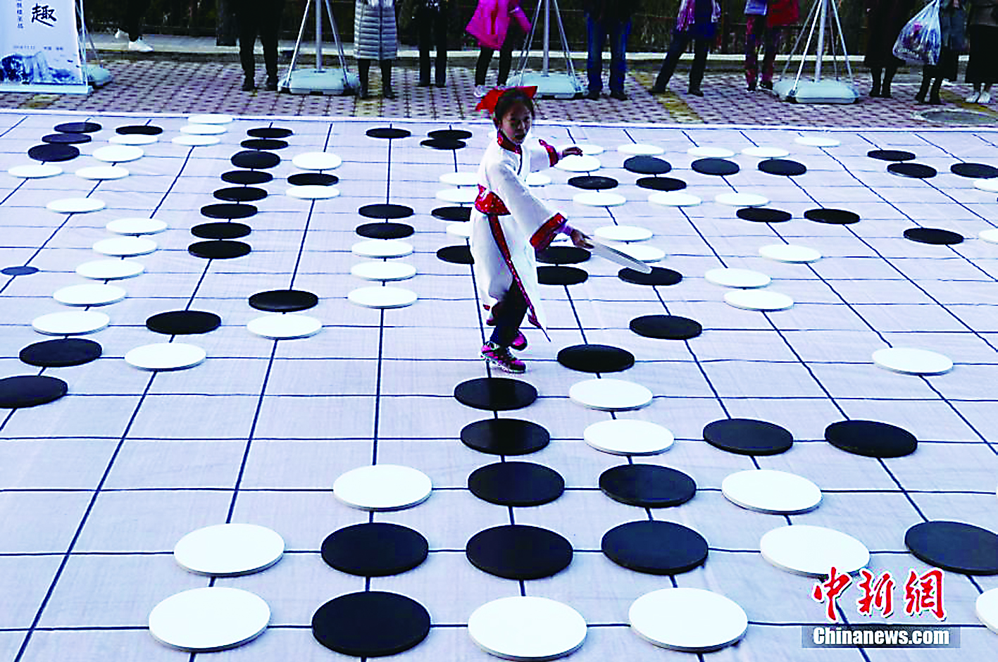 11月12日,第三届“洛阳白云山杯”中国围棋棋圣战决赛在河南洛阳白云山举行。在大人们的围棋大战之外,现场几名小棋手身着传统服饰,抱着直径40厘米的棋子,在100平方米的巨大棋盘上寻找落子的位置,这场趣味赛使小棋手们乐在“棋”中。