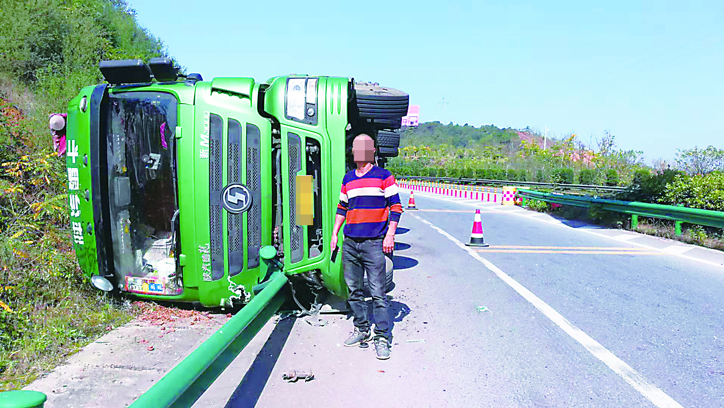 本报讯(记者 刘玺 通讯员 吴功诚 陈志永)昨日,省高警局株洲支队通报了近日发生在沪昆高速醴陵段的一起交通事故:半挂车司机跟车太近,结果前车突然刹车,他处置不当导致车辆侧翻,还好没有造成人员伤亡。