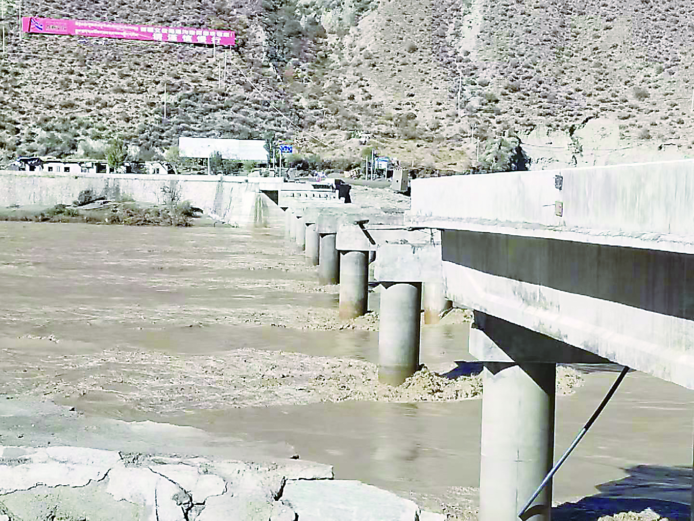 洪水造成大桥7跨梁板被冲毁