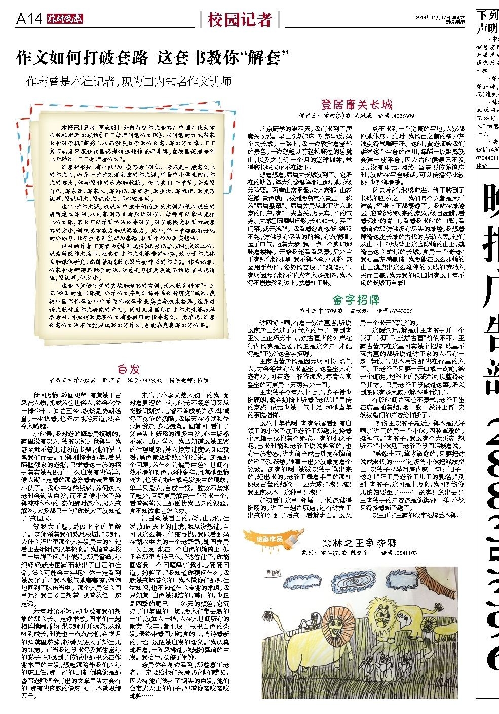 栗雨小学二(7)班 陈新宇 证号:2541103