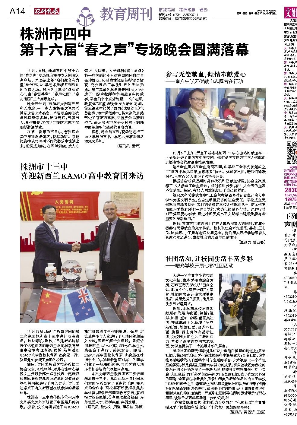 11月7日晚,株洲市四中第十六届“春之声”专场晚会在神农大剧院闪亮登场。本场演出是“咱们教育有力量”株洲市中小学艺术展演系列活动的收官之场。晚会的主题是“春润初心”,由“春雷寻声”、“春风化雨”、“春花满园”三个篇章组成。