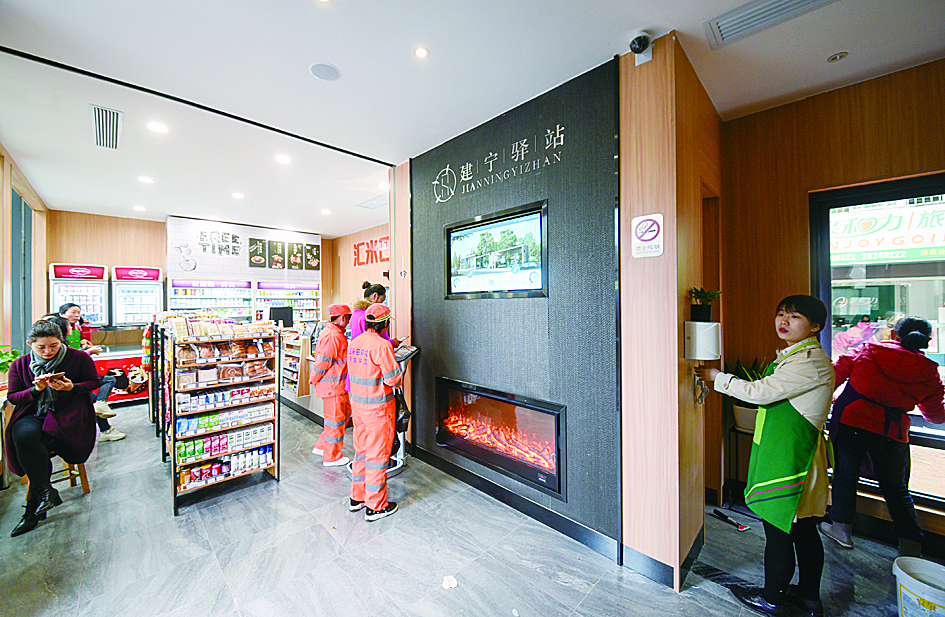 另外,“建宁驿站”内感应式出纸机和垃圾桶、自动调节水温的洗手池、手机插座等设施一应俱全。