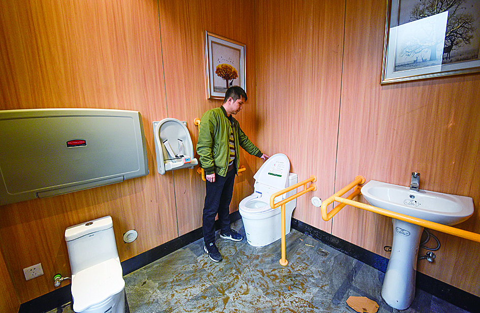 ▶第三卫生间,设有残疾人专用马桶、母婴专用设施 记者 刘震 摄