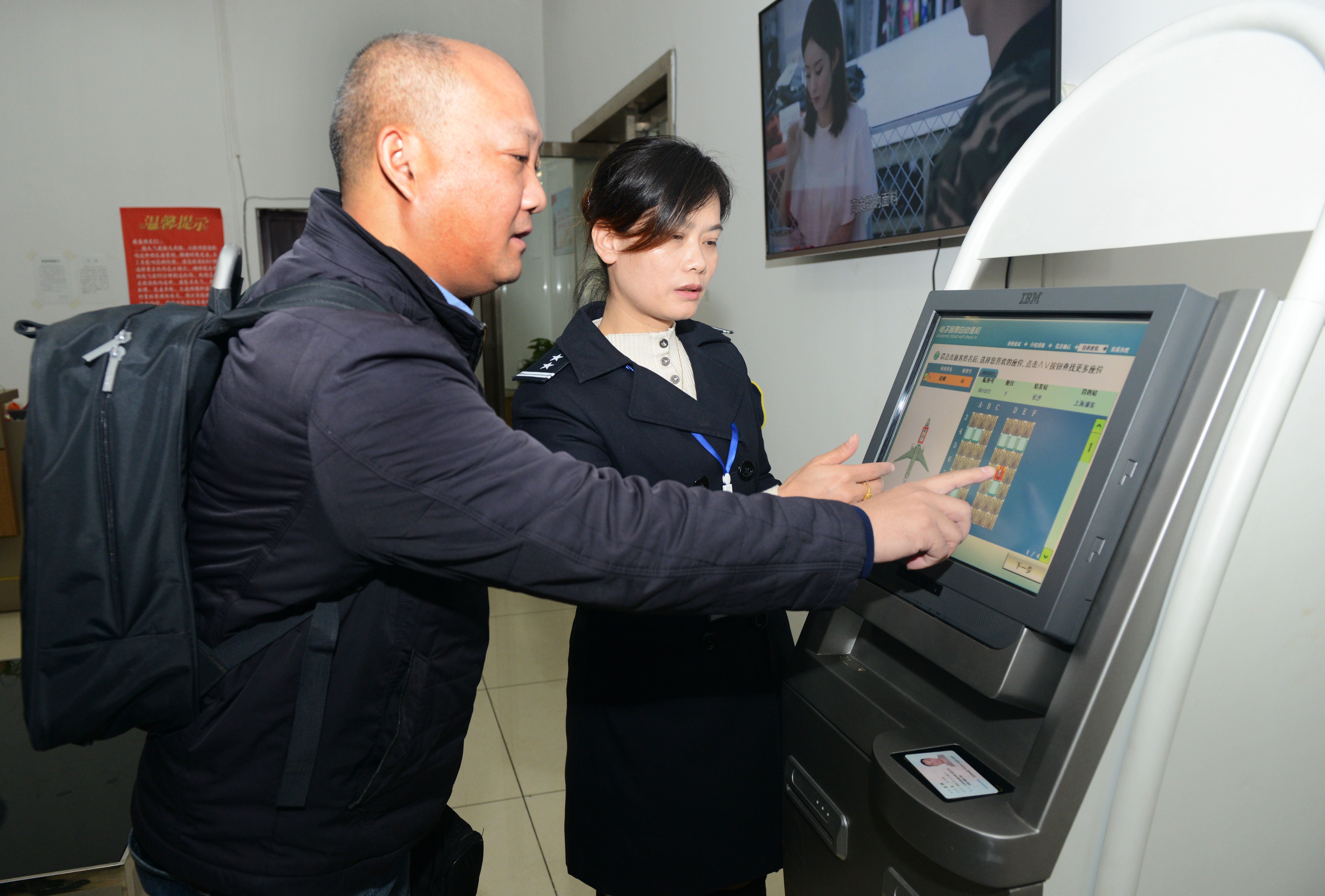 昨日,记者在市中心汽车站到黄花机场的机场大巴候车室内,有不少乘客已在服务员的指导下,尝新使用自助值机柜台。