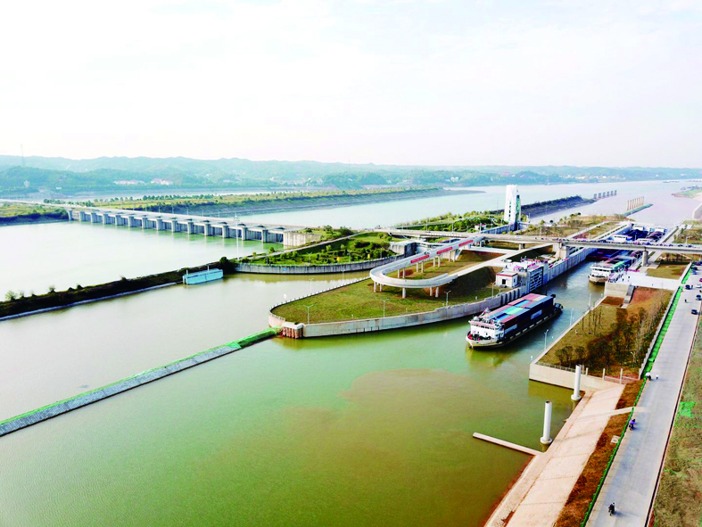 ▲刚刚通航的株洲航电枢纽二线船闸,大幅提升了我市湘江水运能力 记者 戴凛 摄