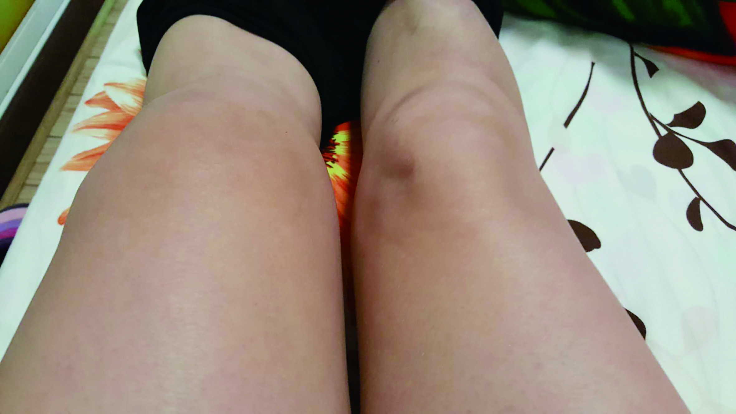 ▲胡女士受伤的左腿明显比右腿肿大 受访者供图
