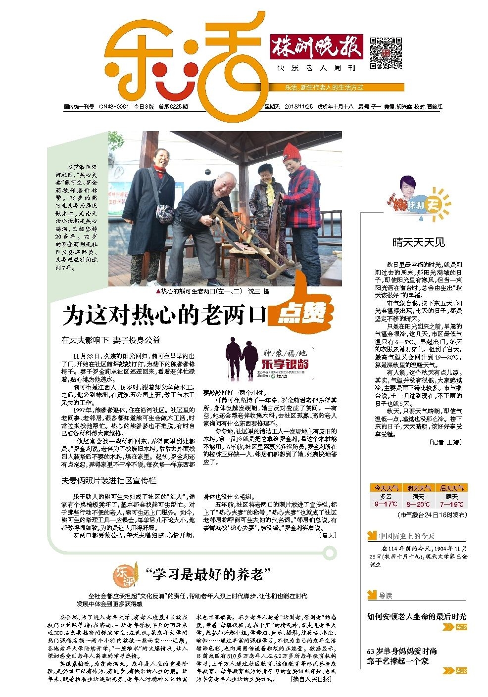 可熊可生坚持了一年多,罗金莉看老伴乐得其所,身体也越发硬朗,她由反对变成了赞同。一有空,她还会帮老伴收集木料,去社区孤寡、高龄老人家询问有什么东西要修理不。