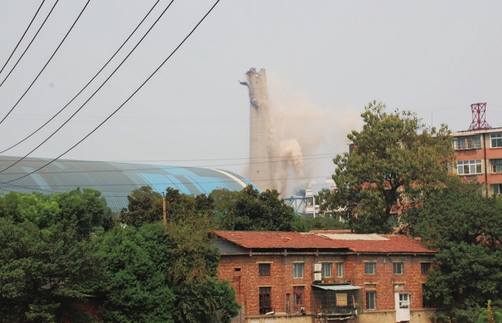 ▲电厂烟囱拆除瞬间陈瑛摄