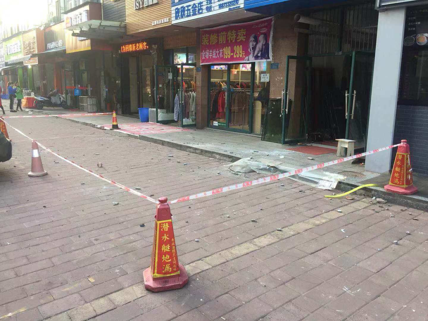 记者赶到现场看到,事发地在香山美境小区相邻的街道上,现场设有警戒线,地上散落大量水泥碎块,还有一些血迹,物管工作人员正在值守。