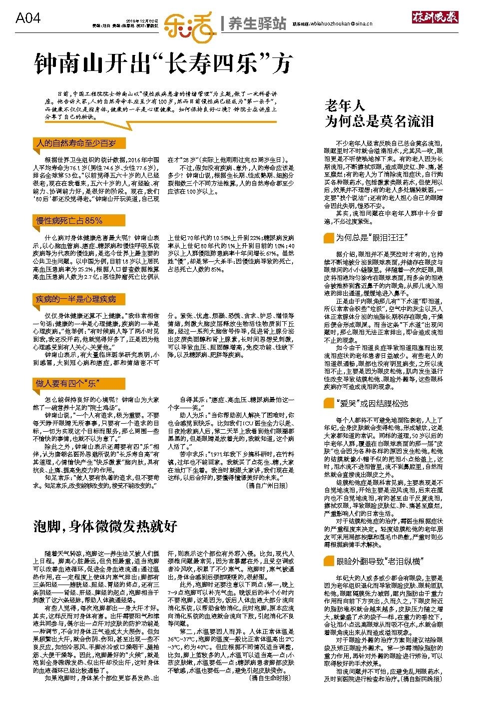 钟南山开出“长寿四乐”方