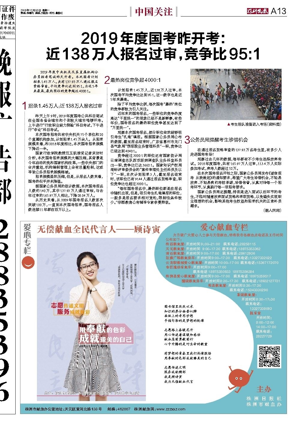 2019年度国考昨开考: 近138万人报名过审,竞争比95:1