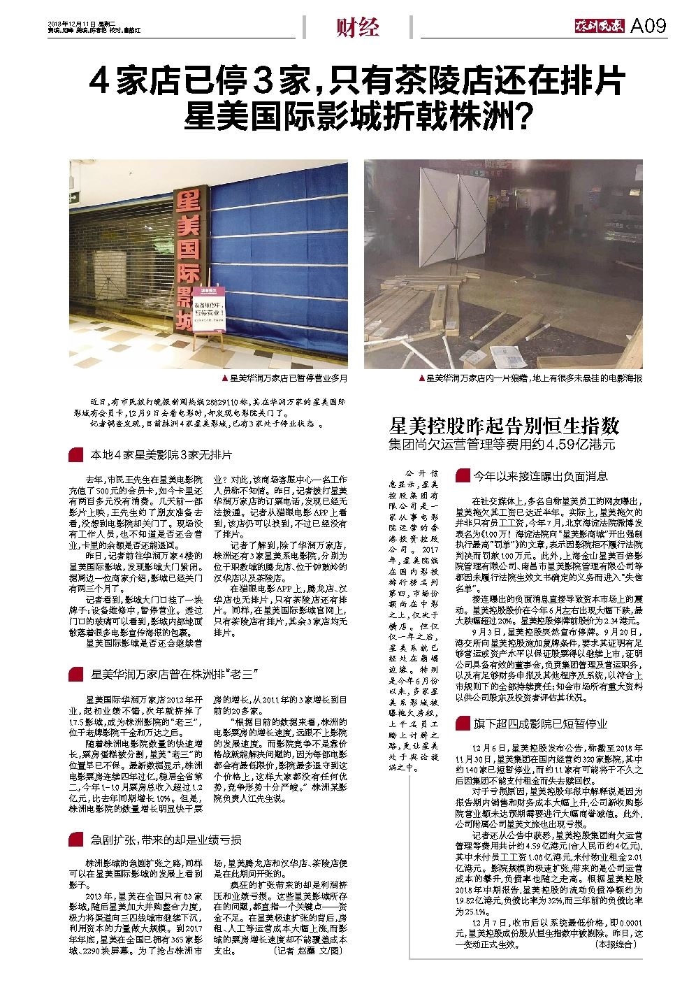 4家店已停3家,只有茶陵店还在排片 星美国际影城折戟株洲?