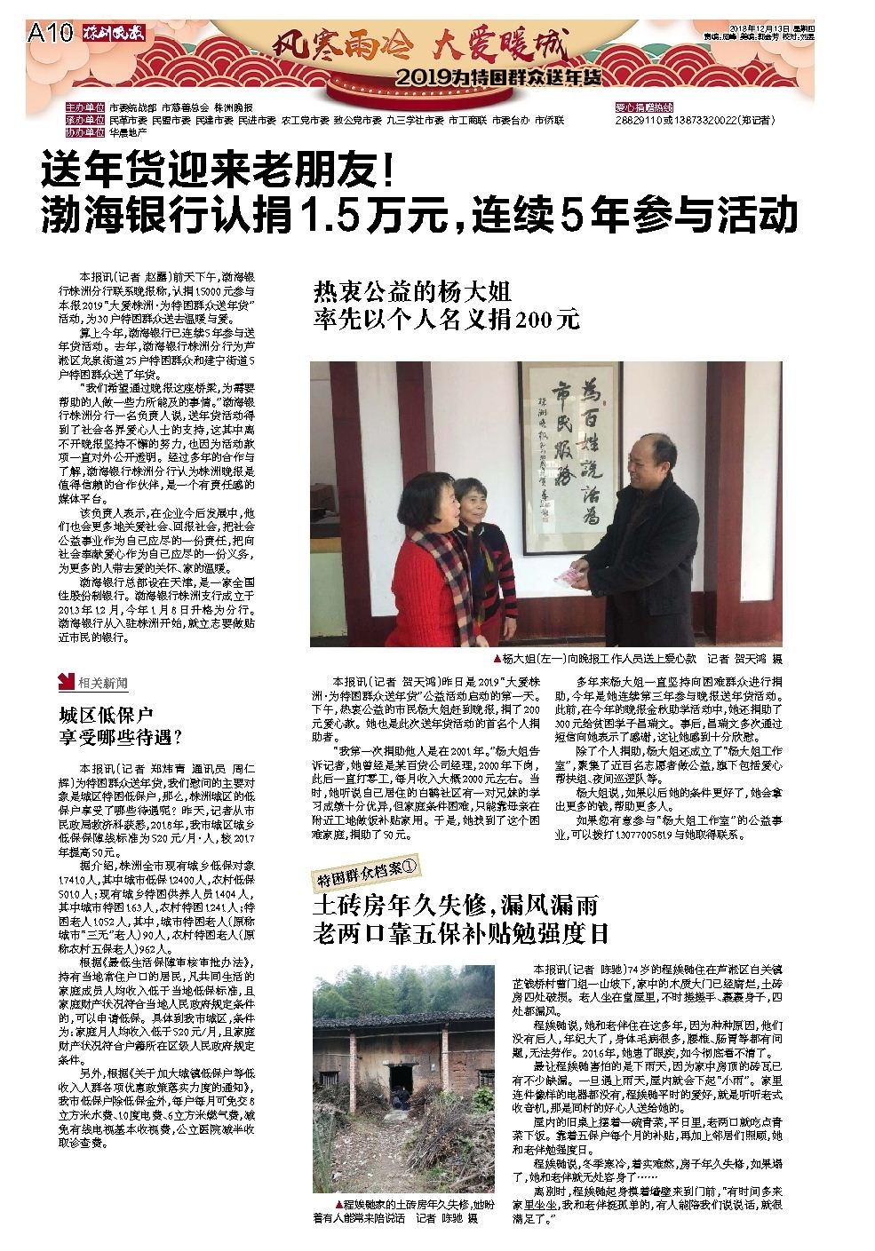 送年货迎来老朋友! 渤海银行认捐1.5万元,连续5年参与活动