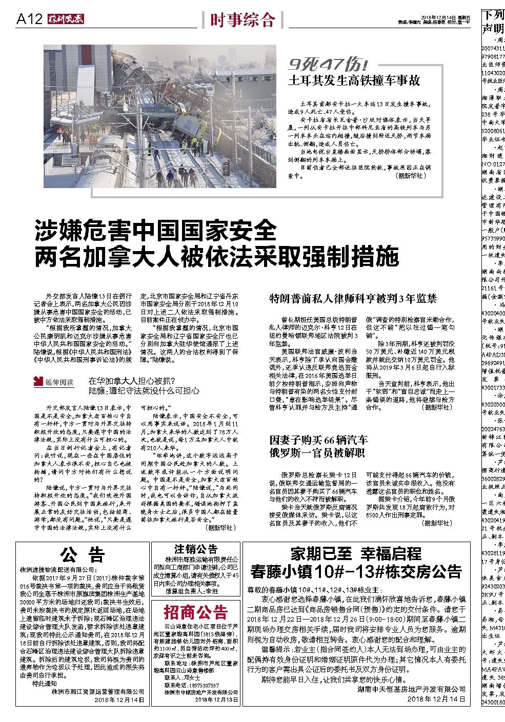 2018年12月14日《株洲晚报》
