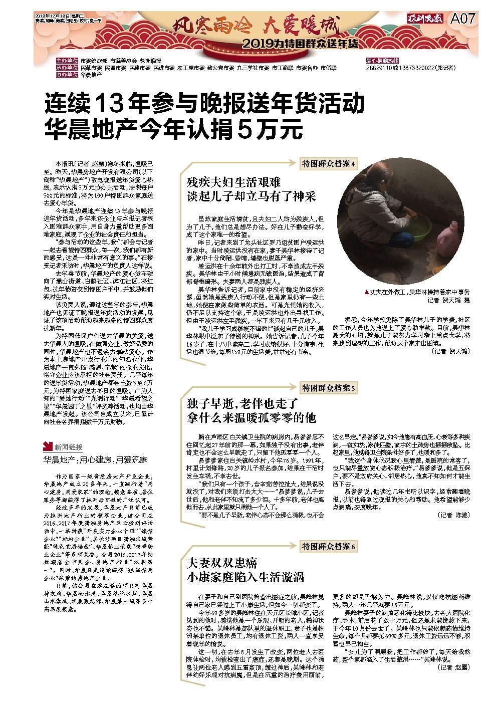 连续13年参与晚报送年货活动 华晨地产今年认捐5万元