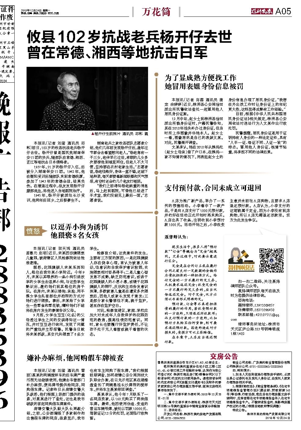 攸县102岁抗战老兵杨开仔去世 曾在常德、湘西等地抗击日军