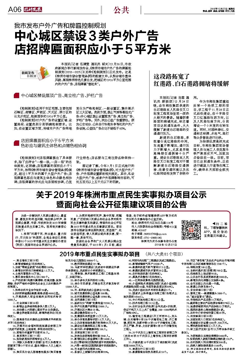关于2019年株洲市重点民生实事拟办项目公示 暨面向社会公开征集建议项目的公告