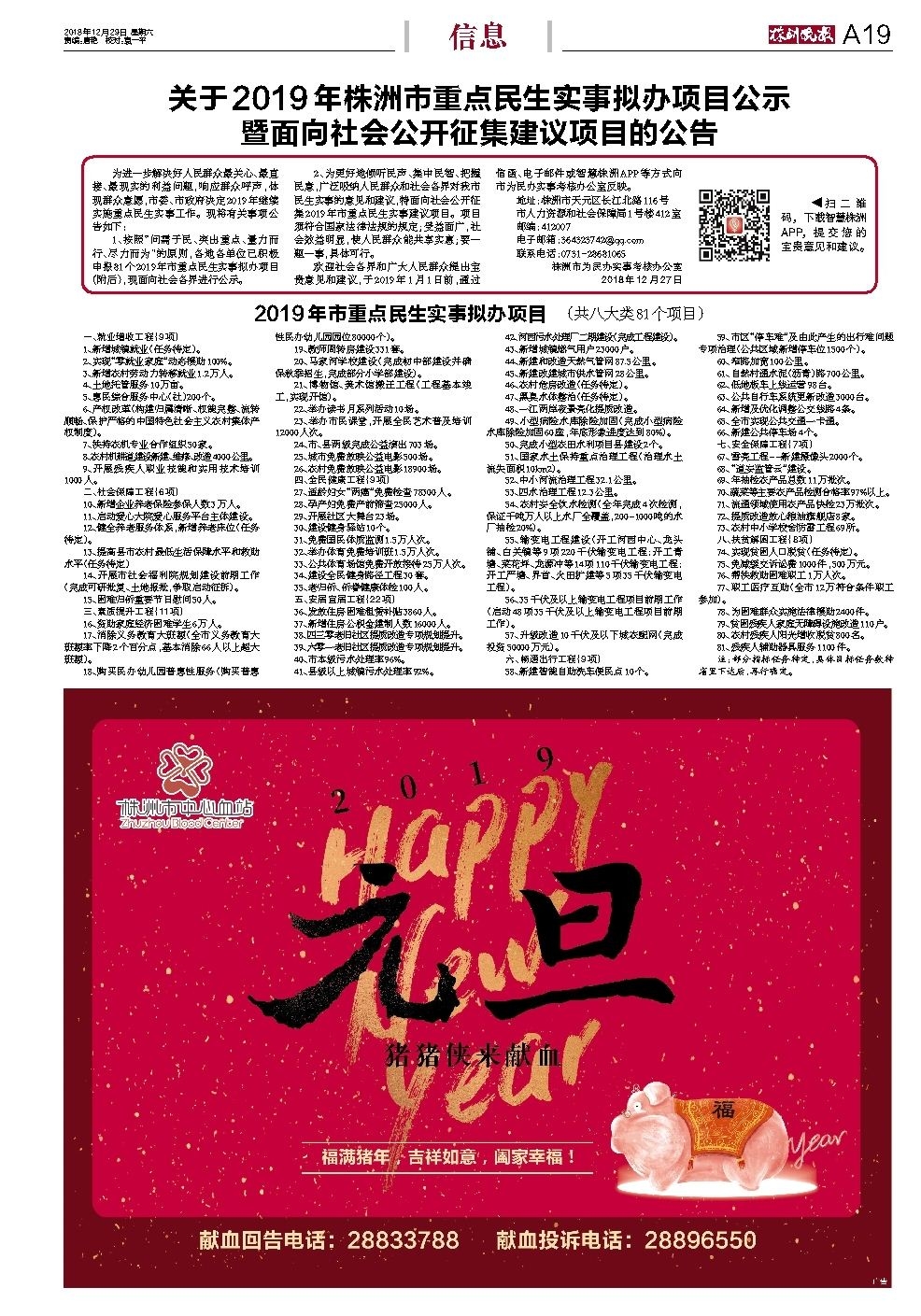 关于2019年株洲市重点民生实事拟办项目公示 暨面向社会公开征集建议项目的公告