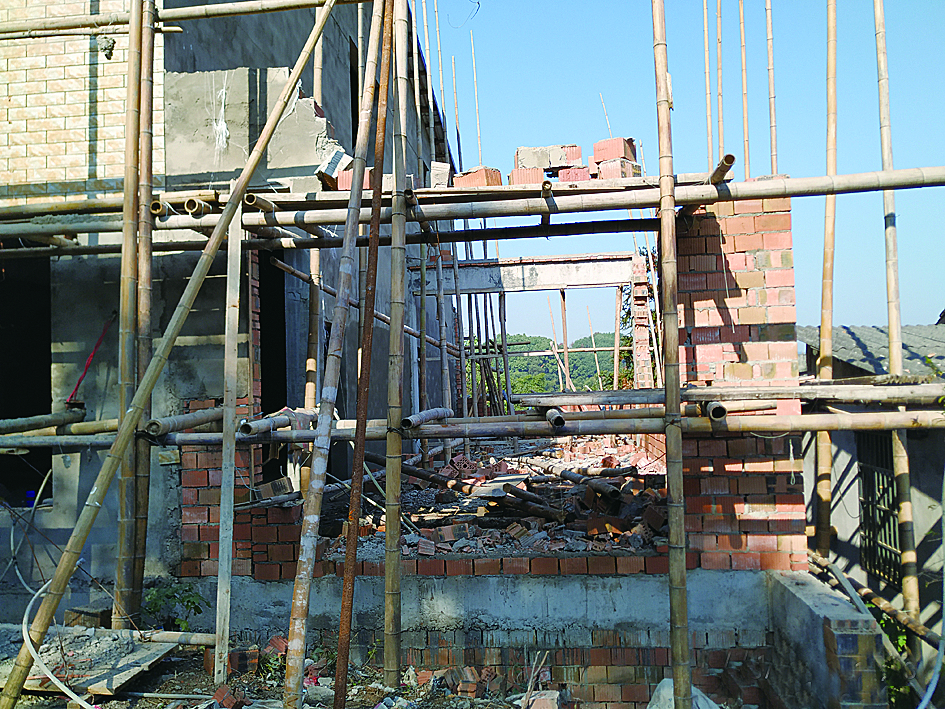 ▲张某新建房屋部分已被拆除 记者 姚时美 摄