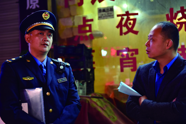 ◀情景模拟综合执法竞赛,“店主”给城管出难题