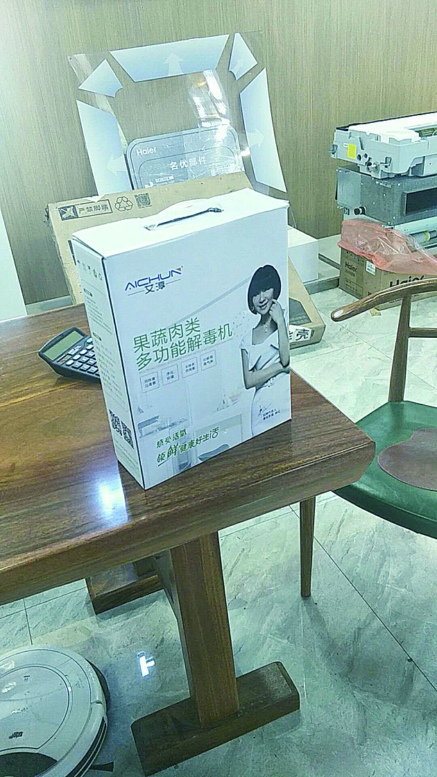 “我们发现有一非法团伙在向阳广场、红旗广场、贺家土等地举办宣讲会,打着‘海尔’名义推销空气净化器、洗菜机等产品,价格都很高昂,还私刻‘海尔’的公章。刘爹爹买的这种洗菜机在市场上仅要数十元,卖5000多元的空气净化器,在市场上也只要一两千元。老人们购买产品的价格不仅翻番,且买到的都是质量较差的杂牌电器。”该负责人称,他们想前往现场核实,但宣讲会有专门人员看守,根本进不去。宣讲人员都穿着“海尔”的工作服,但他们都不认识。