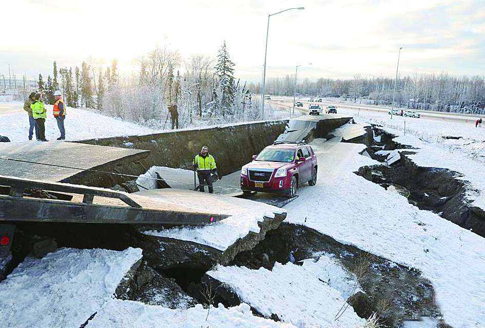 美国发生7.2级地震 前天,美国阿拉斯加州安克雷奇市,地面道路因地震发生塌陷,车辆被困。当天,美国阿拉斯加州南部发生7.2级地震,震中位于阿拉斯加州最大城市安克雷奇以北约13公里处,震源深度40.9公里。 (据人民网)