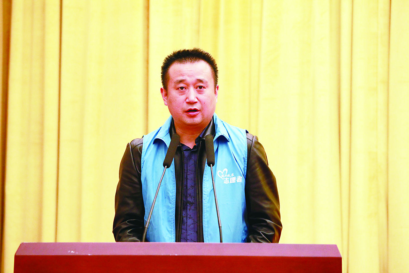 ▲株洲晚报义工联合会执行会长李鸿臻上台作典型发言 通讯员供图