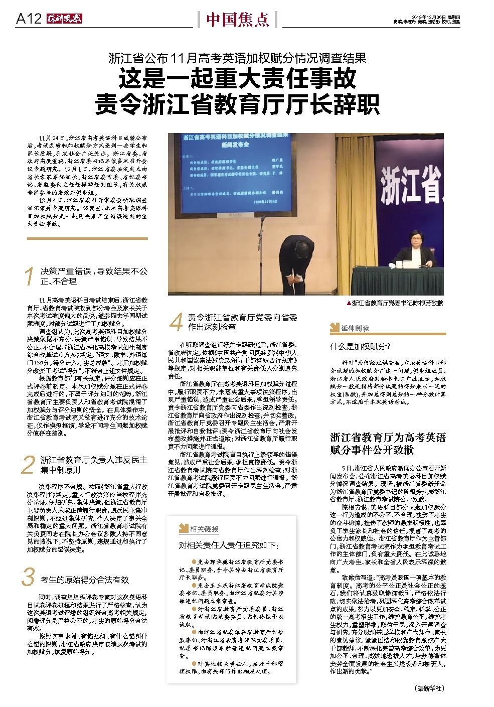 浙江省教育厅为高考英语赋分事件公开致歉