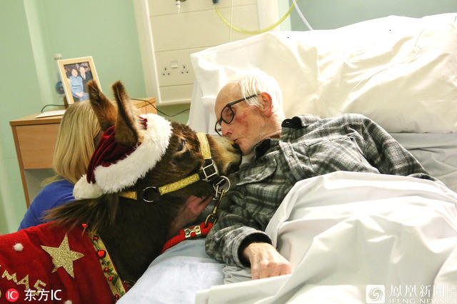 英国莱斯特郡的Isla是一头6个月大的微型地中海驴,它站起来只有27英寸(68.58厘米)高,但这丝毫阻止不了Isla为人们带去圣诞节的欢乐。最近几周,Isla穿上圣诞服装,去养老院、医院和学校,成了这些场所的明星。小Isla的主人看到与动物互动可以改变人们的生活后,开始了这项业务,她说:“微型地中海驴非常适合被用于治疗工作,因为它们非常安静。” (摘自东方IC)