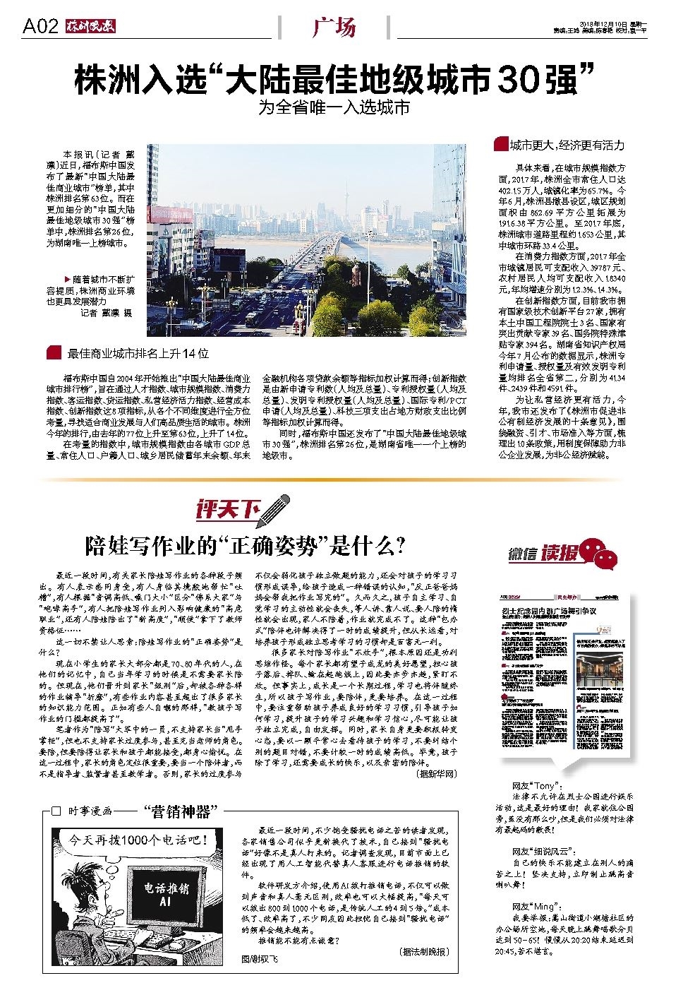 本报讯(记者 戴凛)近日,福布斯中国发布了最新“中国大陆最佳商业城市”榜单,其中株洲排名第63位。而在更加细分的“中国大陆最佳地级城市30强”榜单中,株洲排名第26位,为湖南唯一上榜城市。