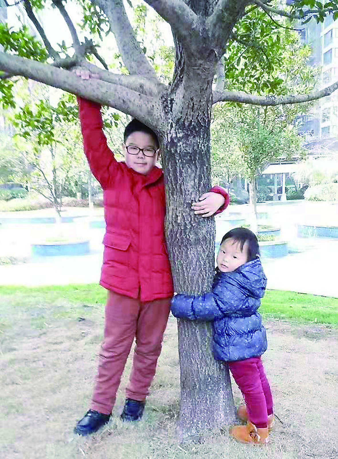 初冬的阳光暖暖地洒向大地,哥哥带着妹妹在小区游玩,来到一棵大树下,妹妹抱着粗壮的树杆,哥哥则手扶树枝,一起摆个造型“要和大树合个影”。愿兄妹俩像大树一样茁壮成长!
