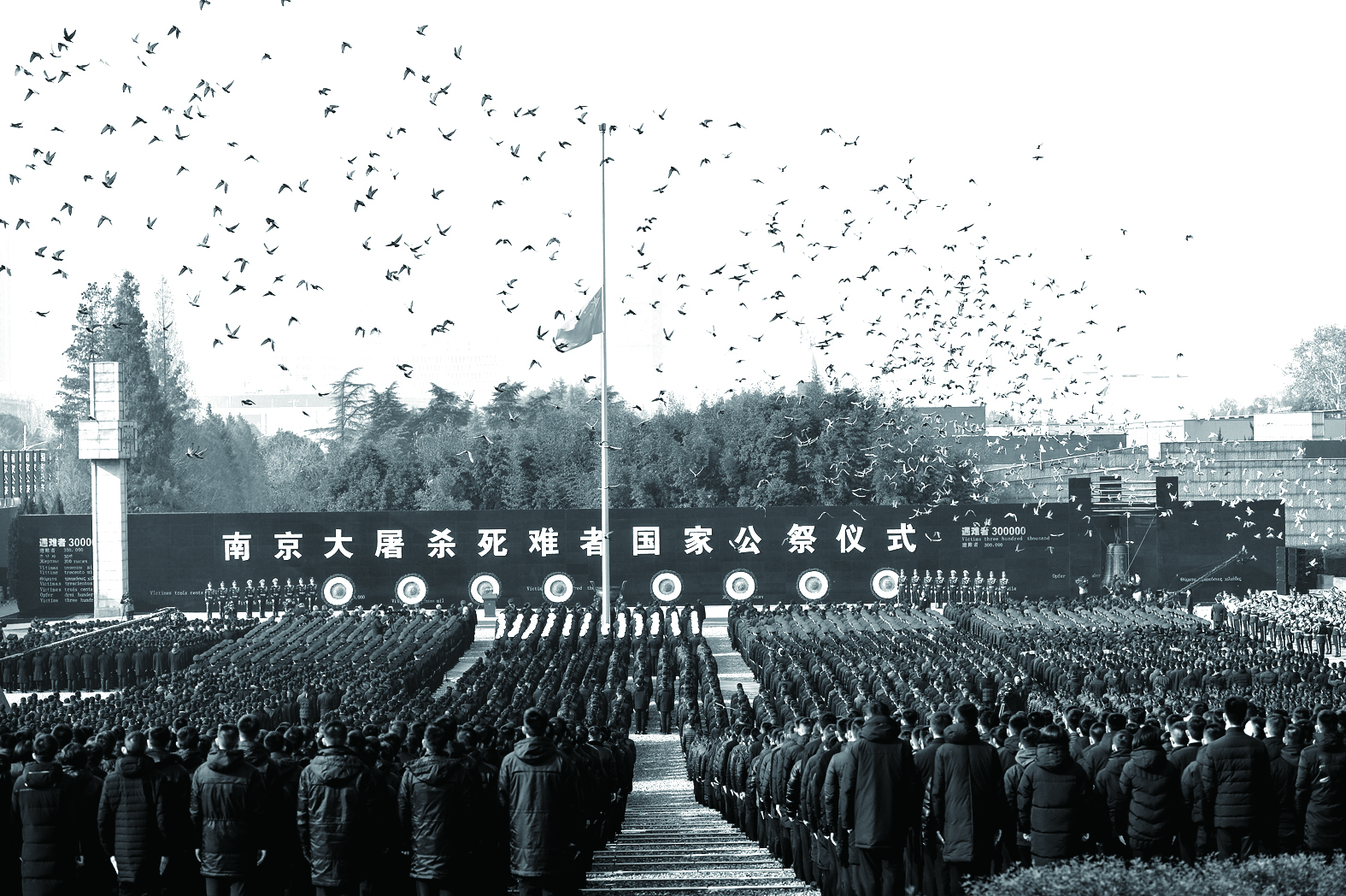 ▲12月13日,南京大屠杀死难者国家公祭仪式现场放飞和平鸽