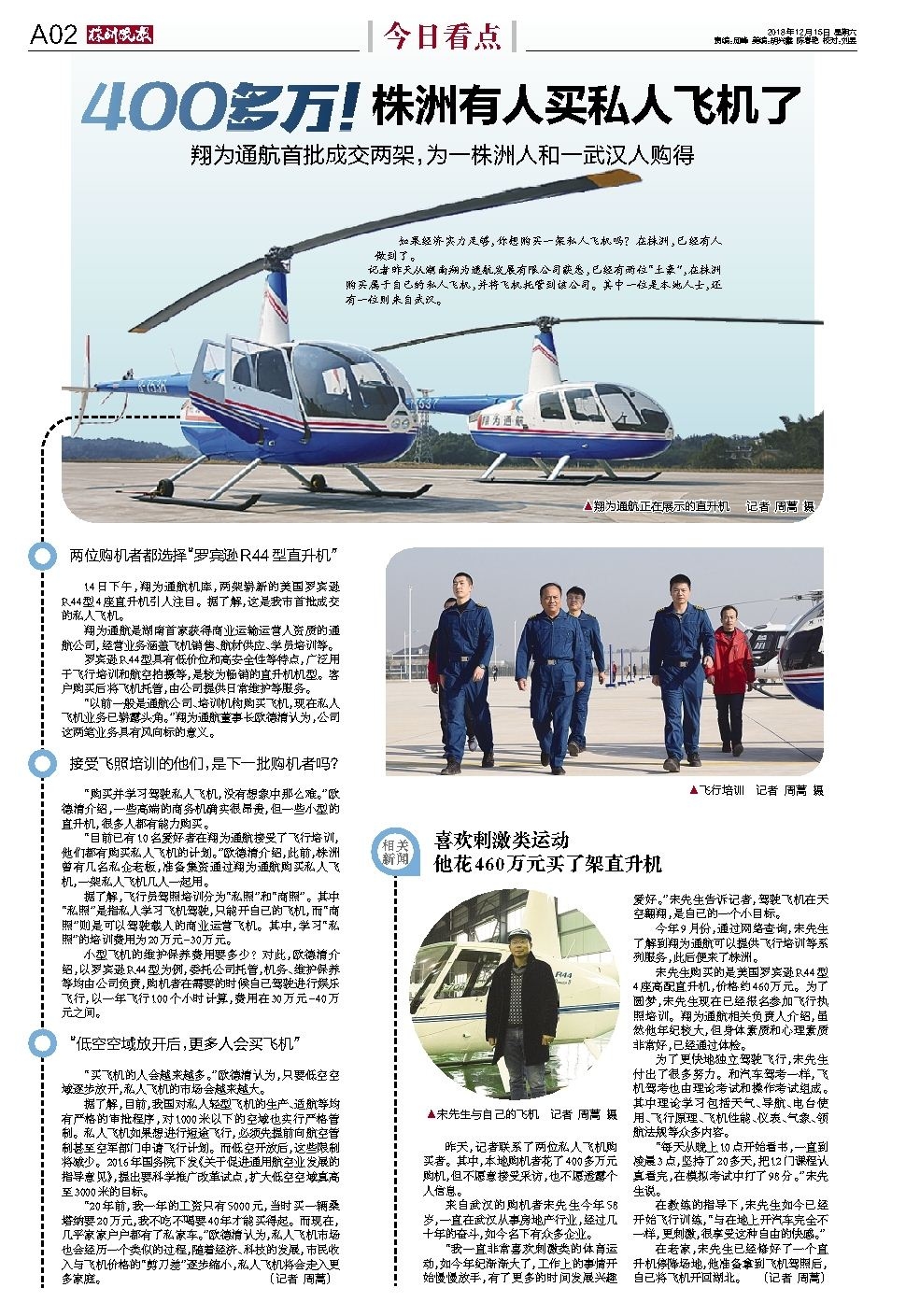 两位购机者都选择“罗宾逊R44型直升机”