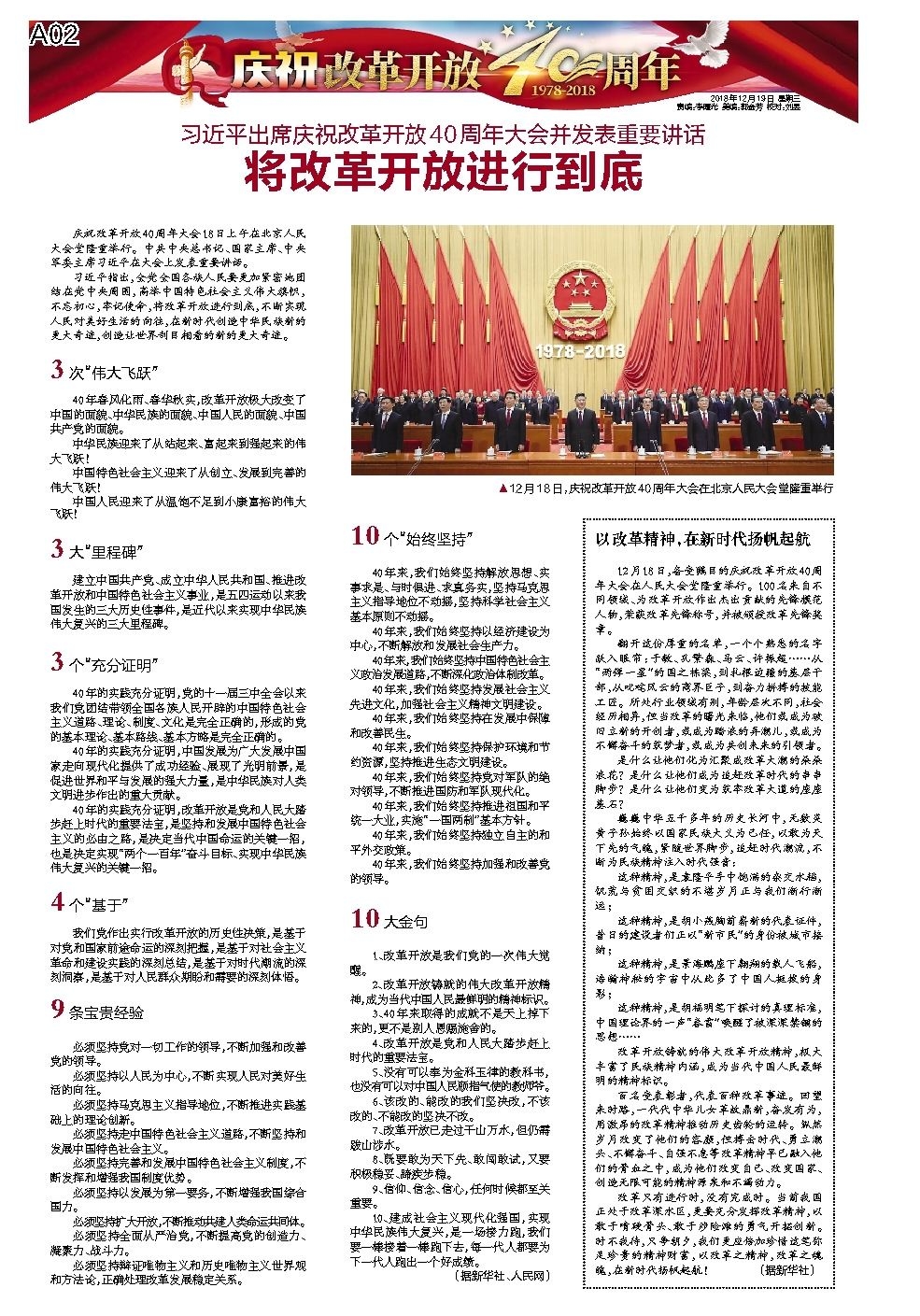 ▲12月18日,庆祝改革开放40周年大会在北京人民大会堂隆重举行