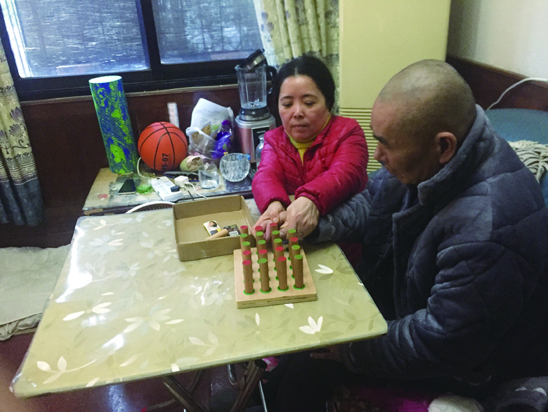 ▲李跃萍帮助王军做手部功能康复 记者 刘玺 摄