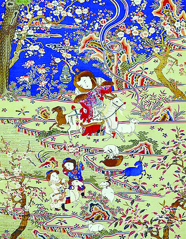 ▲乾隆年制缂丝加绣《九阳消寒图》(局部)