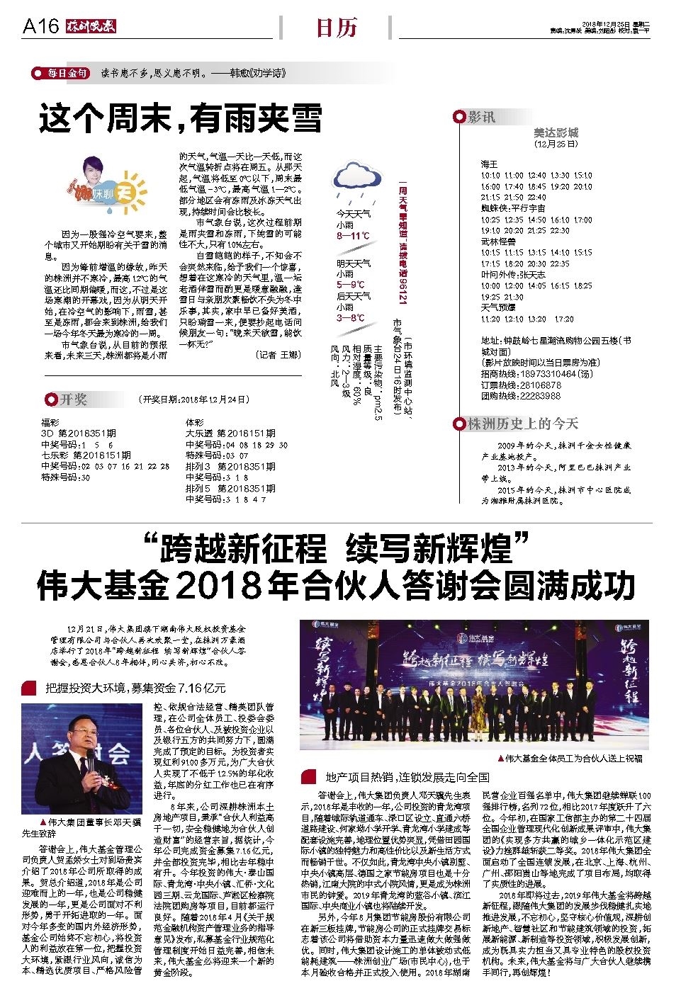 12月21日,伟大集团旗下湖南伟大股权投资基金管理有限公司与合伙人再次欢聚一堂,在株洲万豪酒店举行了2018年“跨越新征程 续写新辉煌”合伙人答谢会,感恩合伙人8年相伴,同心共济,初心不改。