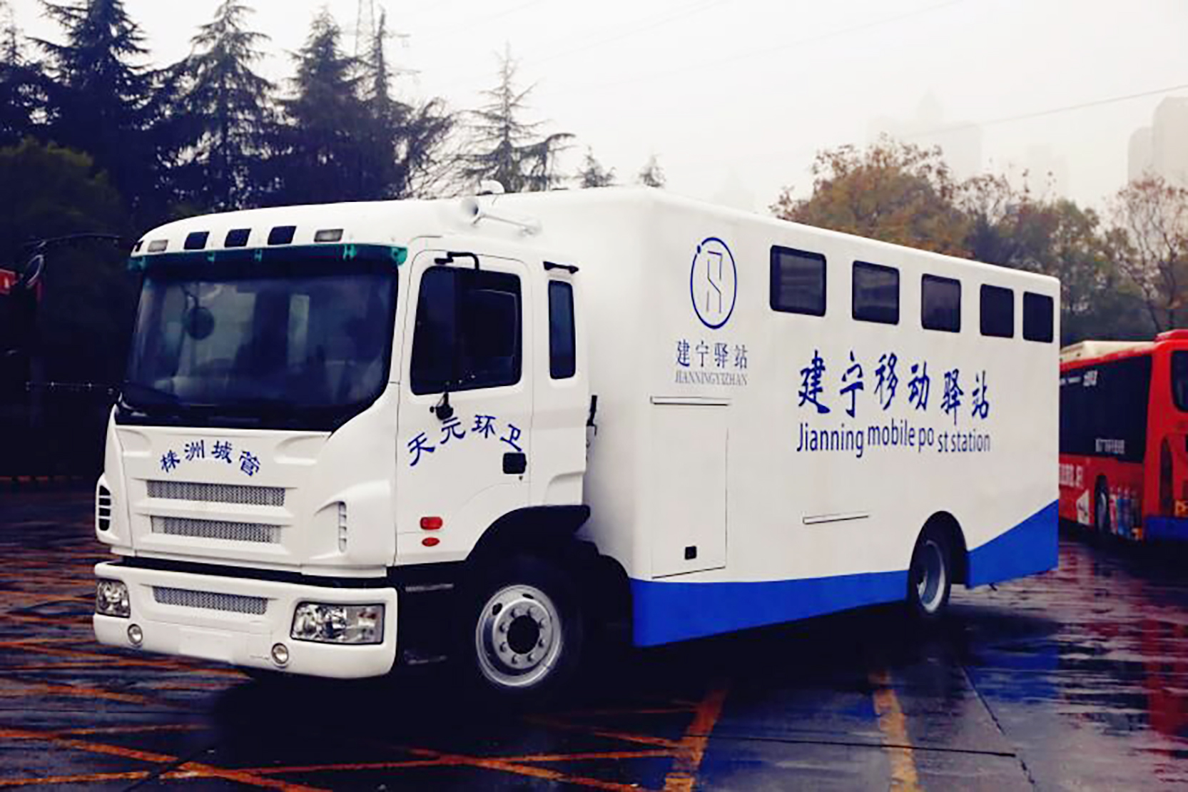 ▲昨日,一座移动式“建宁驿站”在武广西站“上岗” 通讯员供图