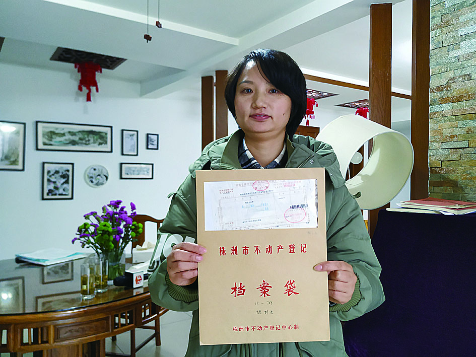 ▲雷先生的妻子胡女士出示办证所需的资料 记者 姚时美 摄