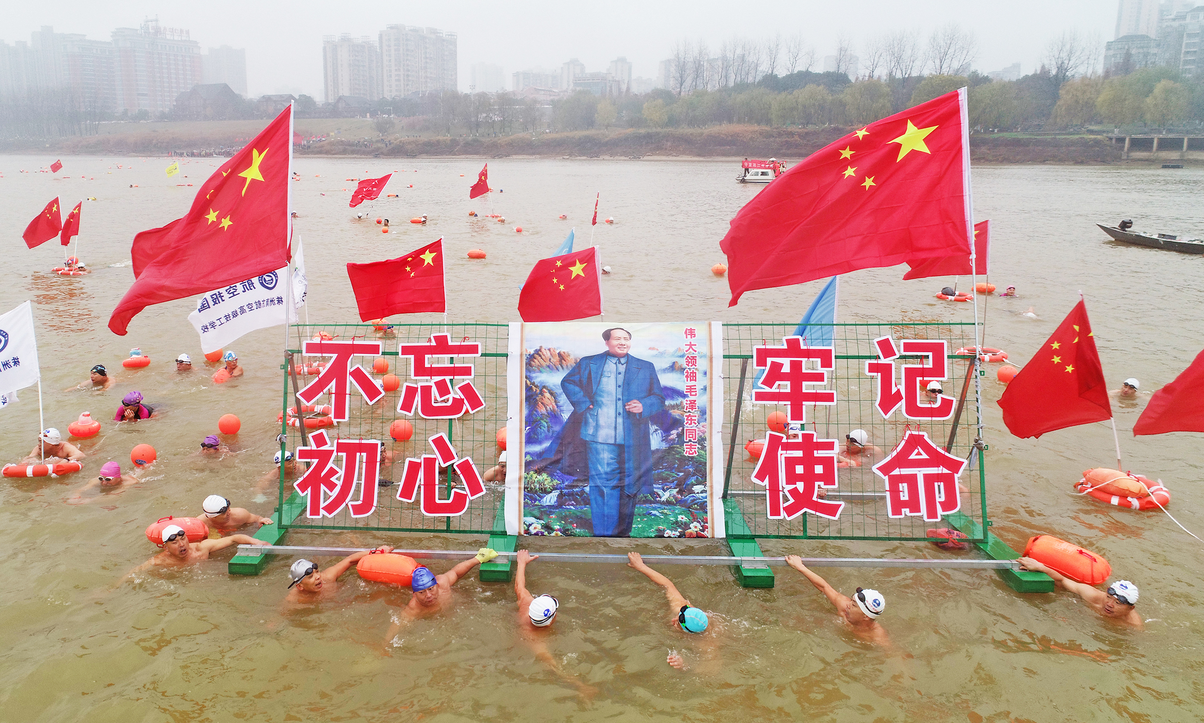 本报讯(记者 肖蓉)12月26日,我市600余名冬泳爱好者横渡湘江,以此纪念毛泽东同志诞辰125周年。