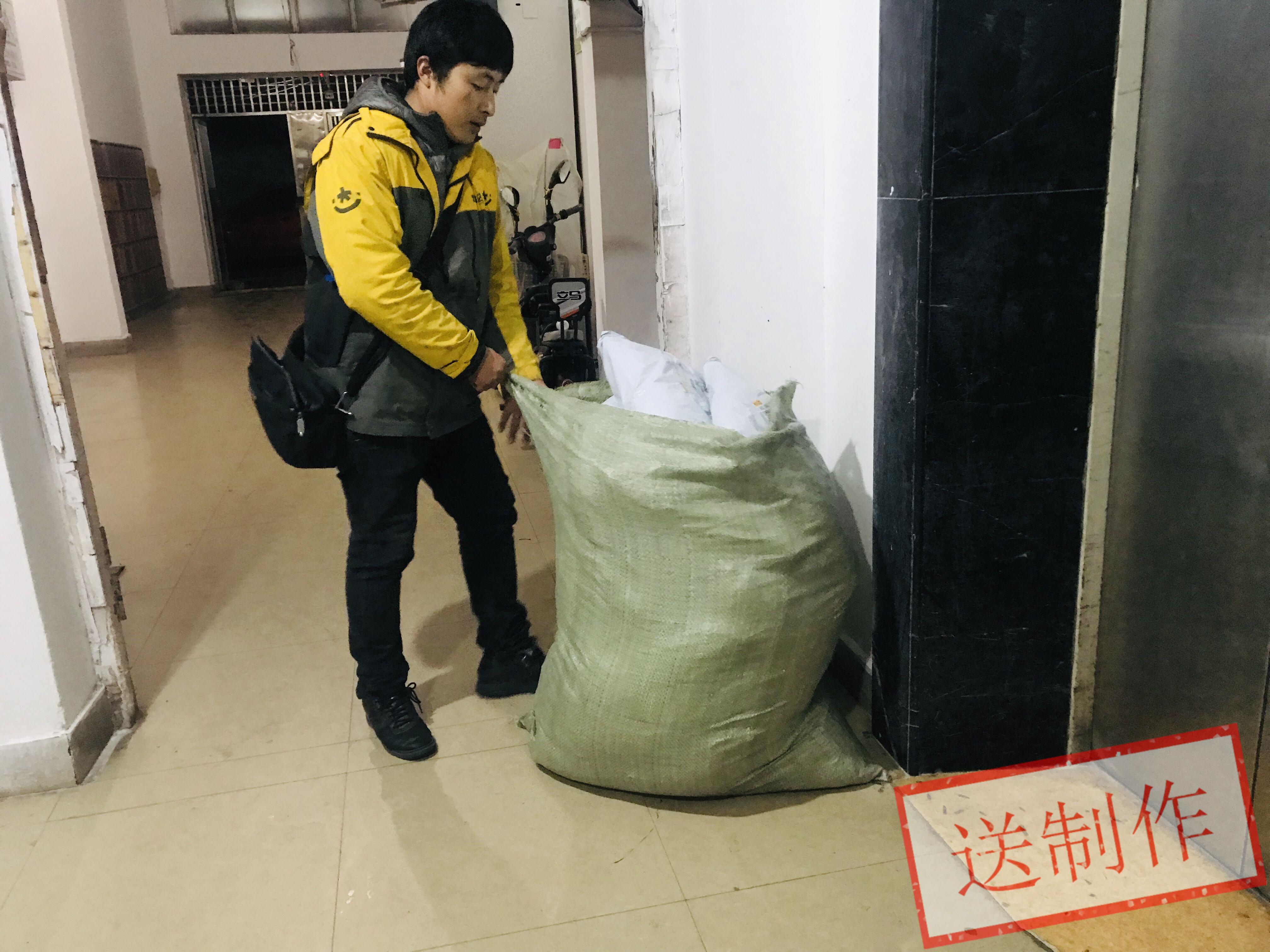 ▲昨晚6点半,一名快递员还在天元区一小区忙着收货 记者 戴凛 摄