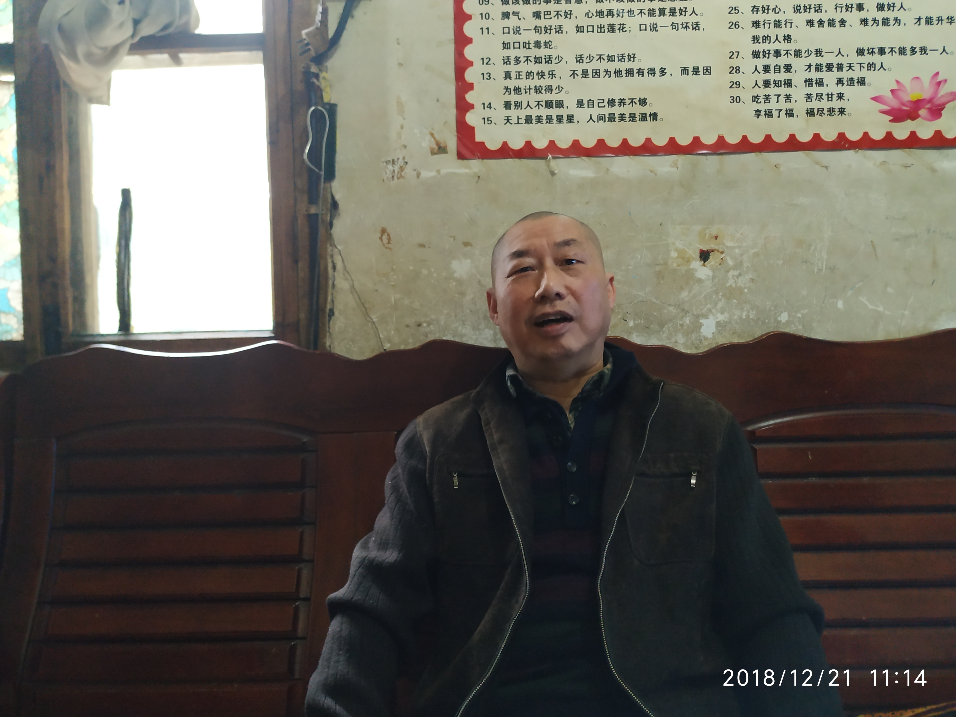 ▲中风的谢文正已经不能说话 记者 姚时美 摄