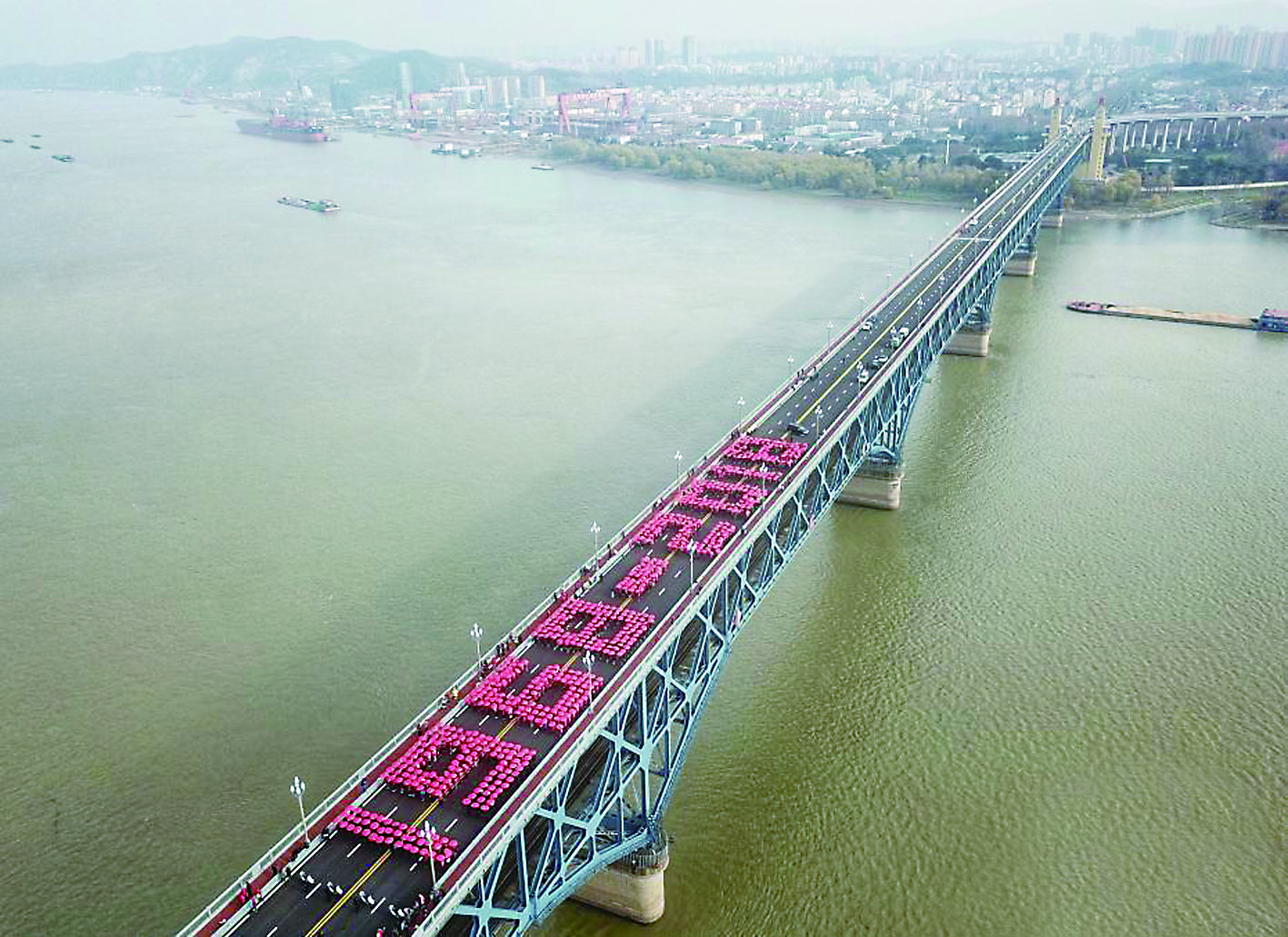 前天,通过南京交通广播寻找到的曾经参加过南京长江大桥建成通车仪式的“小伙伴”及曾经的建设者、守卫者们再次走上大桥,与市民代表一起在桥面拼出“1968-2018”字样,为五十岁的南京长江大桥庆生。据悉,封闭维修了两年多的南京长江大桥将于12月29日恢复通车。