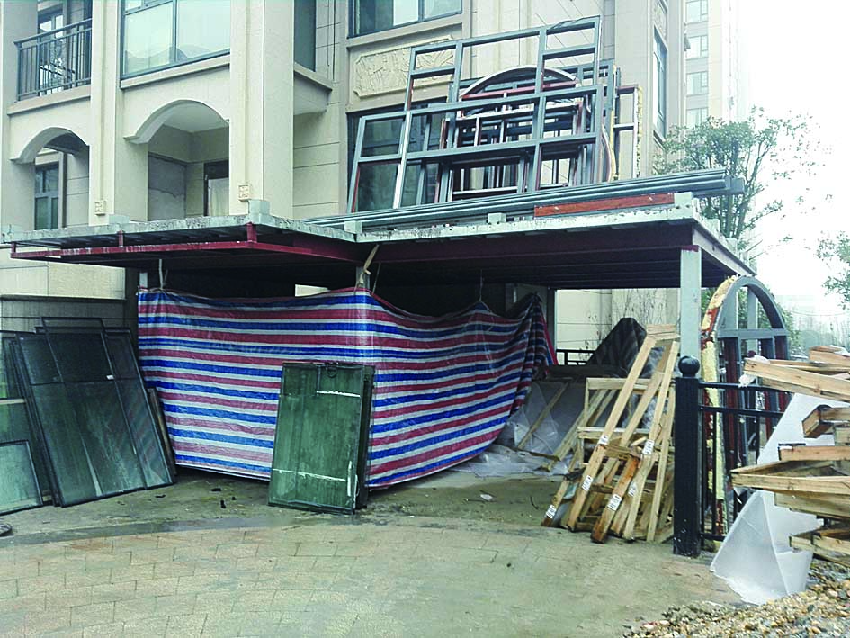 昨天上午,记者在该小区看到,小区装修的业主并不多,但违规建设的迹象比较明显。