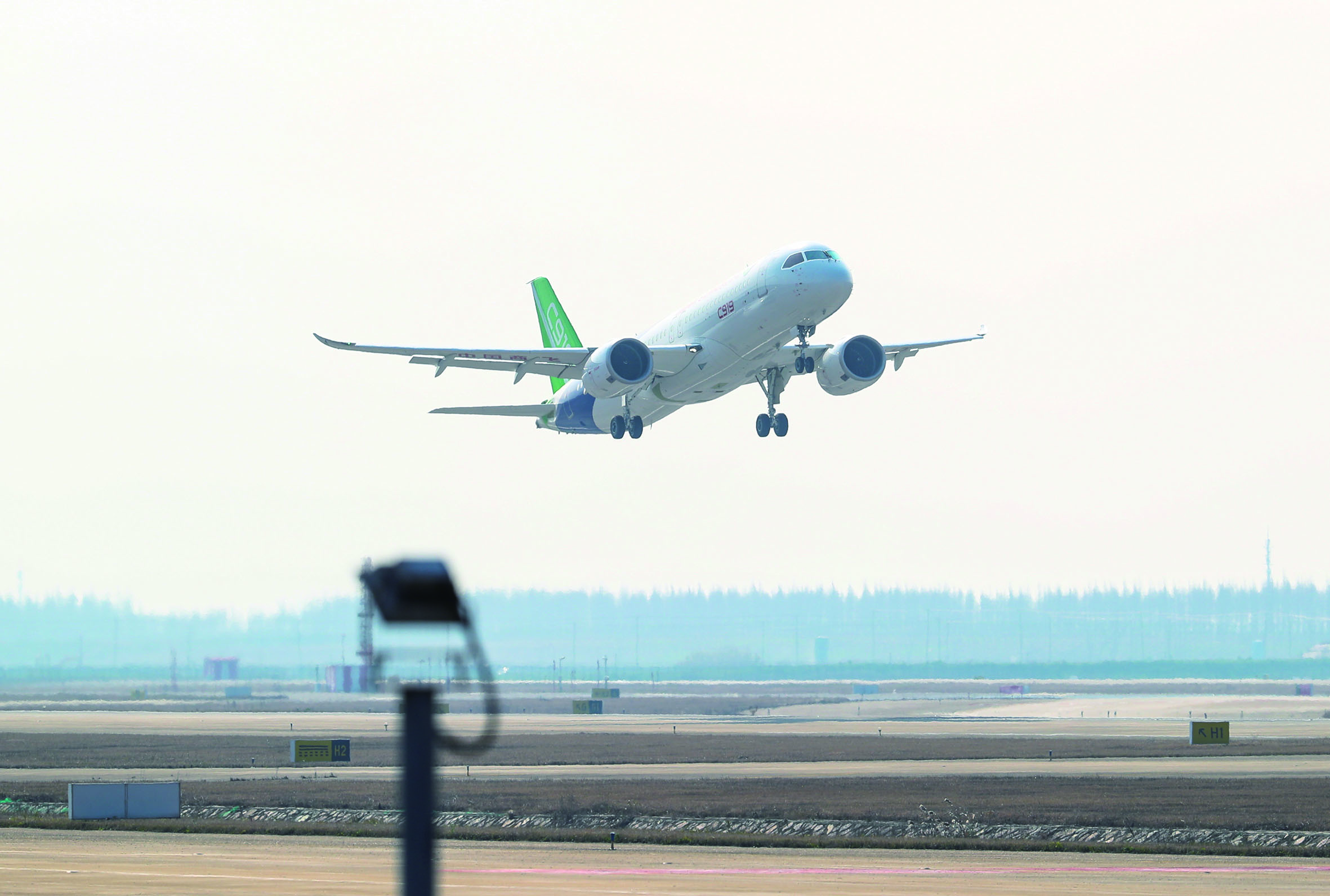12月28日12时45分,C919国产大型客机103架机平安降落在上海浦东国际机场,圆满完成第一次飞行,标志着目前共三架C919飞机进入试飞状态。