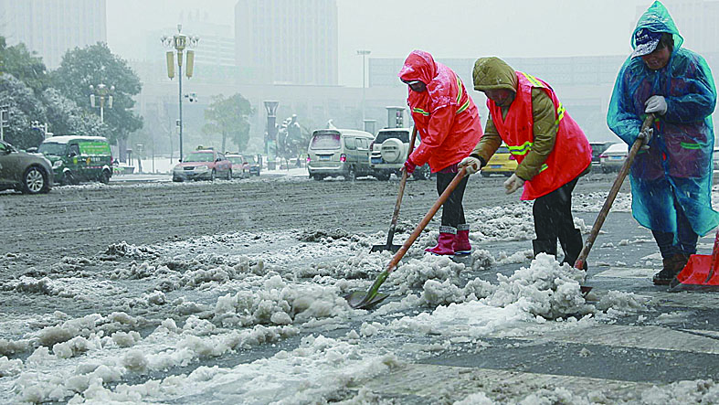 不少花木被积雪压弯了腰。昨天,园林工人抗雪防冻的一个重点,就是拿着长竹竿把行道树上的积雪拨下来,以免压坏树木。此外,市城管局部署安排各公园管理处清除主要游道、桥面积雪,暂停部分游乐设施运营,确保游客安全。