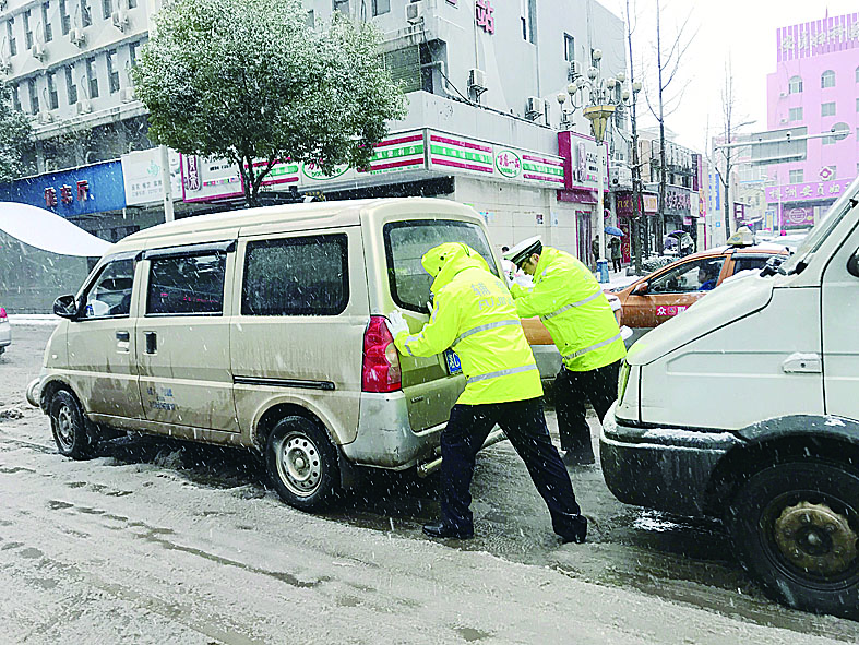 本报讯(记者 刘玺 通讯员 彭晚华)昨日凌晨开始,我市部分道路、桥梁出现不同程度结冰积雪情况。为此,市公安局交警支队启动雨雪冰冻恶劣天气交通管理应急机制,全员上路疏导交通,在易结冰路段加强值守,配合相关部门清扫积雪,救助被困司机及群众,并开展24小时不间断执勤巡逻,我市道路未发生严重堵塞。