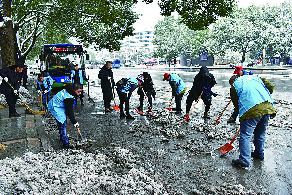 昨日下午,株洲晚报志愿者联合会、株洲公交发展股份有限公司、湖南铁路科技职业技术学院微笑青年志愿者、小红帽青年志愿者们一起走上街头,清理路面及公交车站积雪。