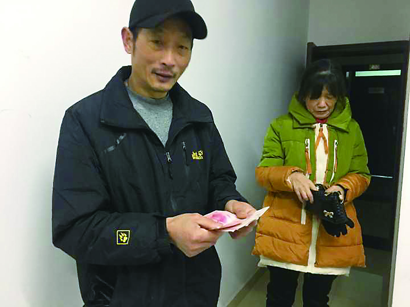 ▲毛佩君夫妻俩亲自来到晚报送来500元现金 记者 成姣兰 摄