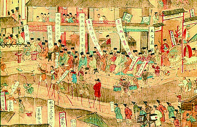 ▲明代佚名绘《南都繁会图》(局部),图中有多家专门经营从丝绸之路过来的“西北皮货客栈”